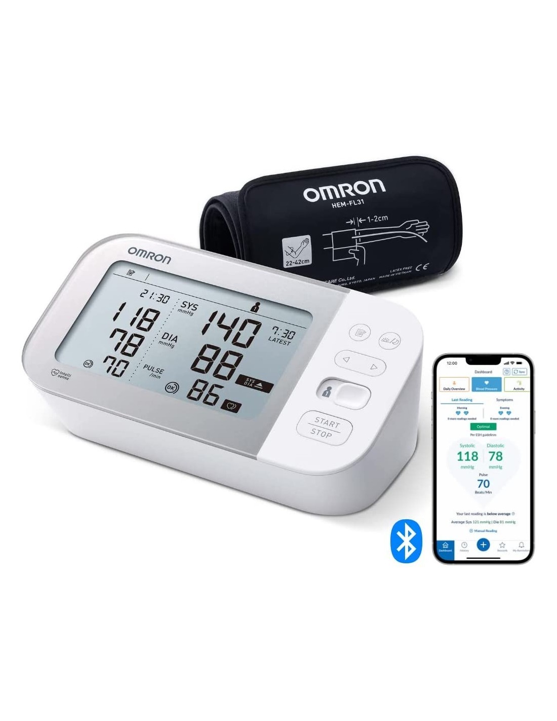 - Aplicación Omron Connect para móvil iPhone/Android: almacena y sigue las mediciones en tu smartphone.