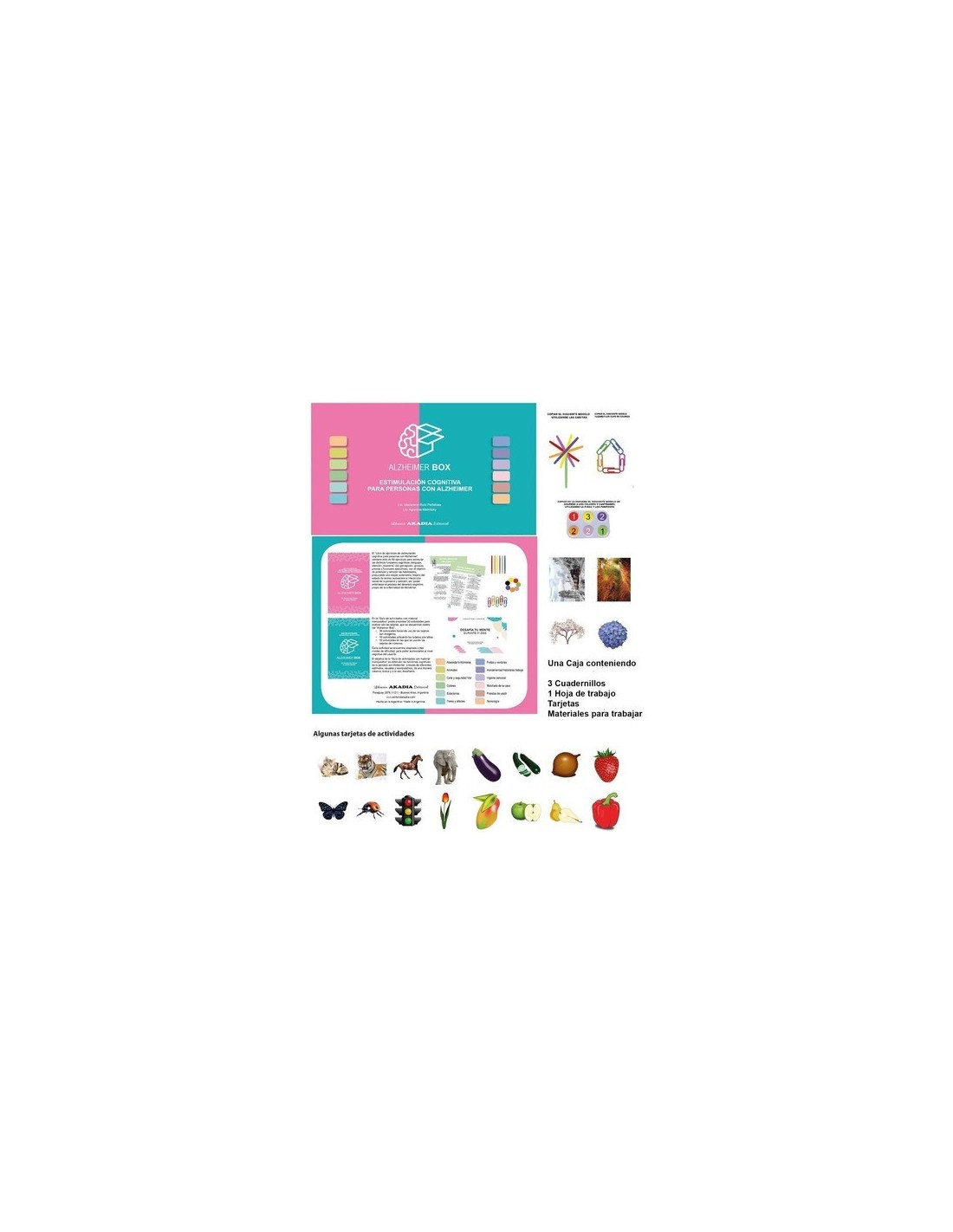 Incluye libro de ejercicios de estimulación cognitiva para personas con Alzheimer. Podrá encontrar cómo ejercitar las distintas funciones cognitivas: lenguaje, atención, memoria, visión, percepción,...